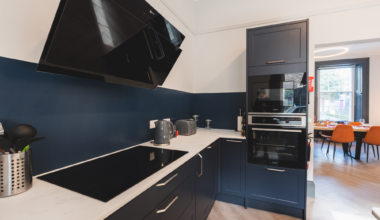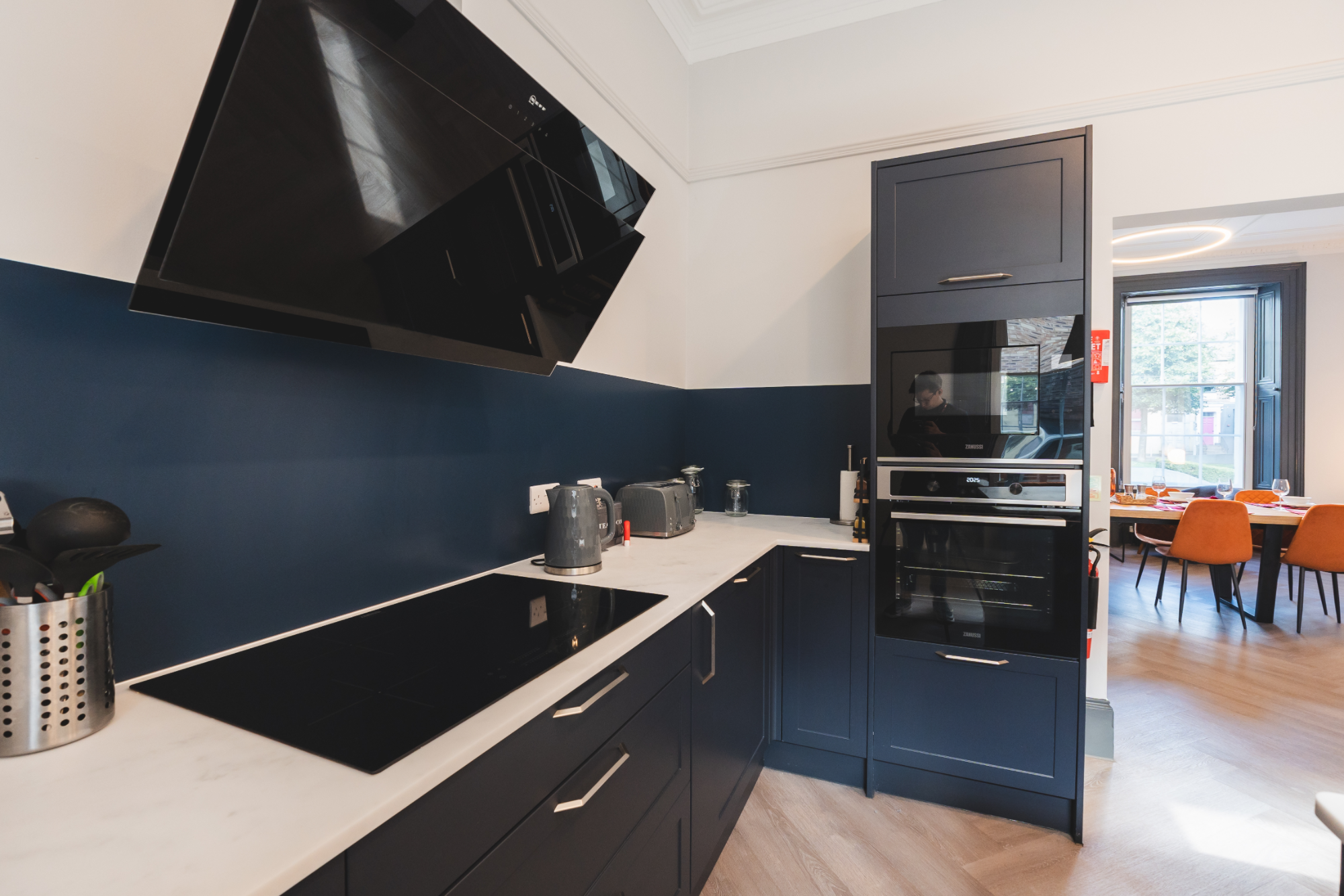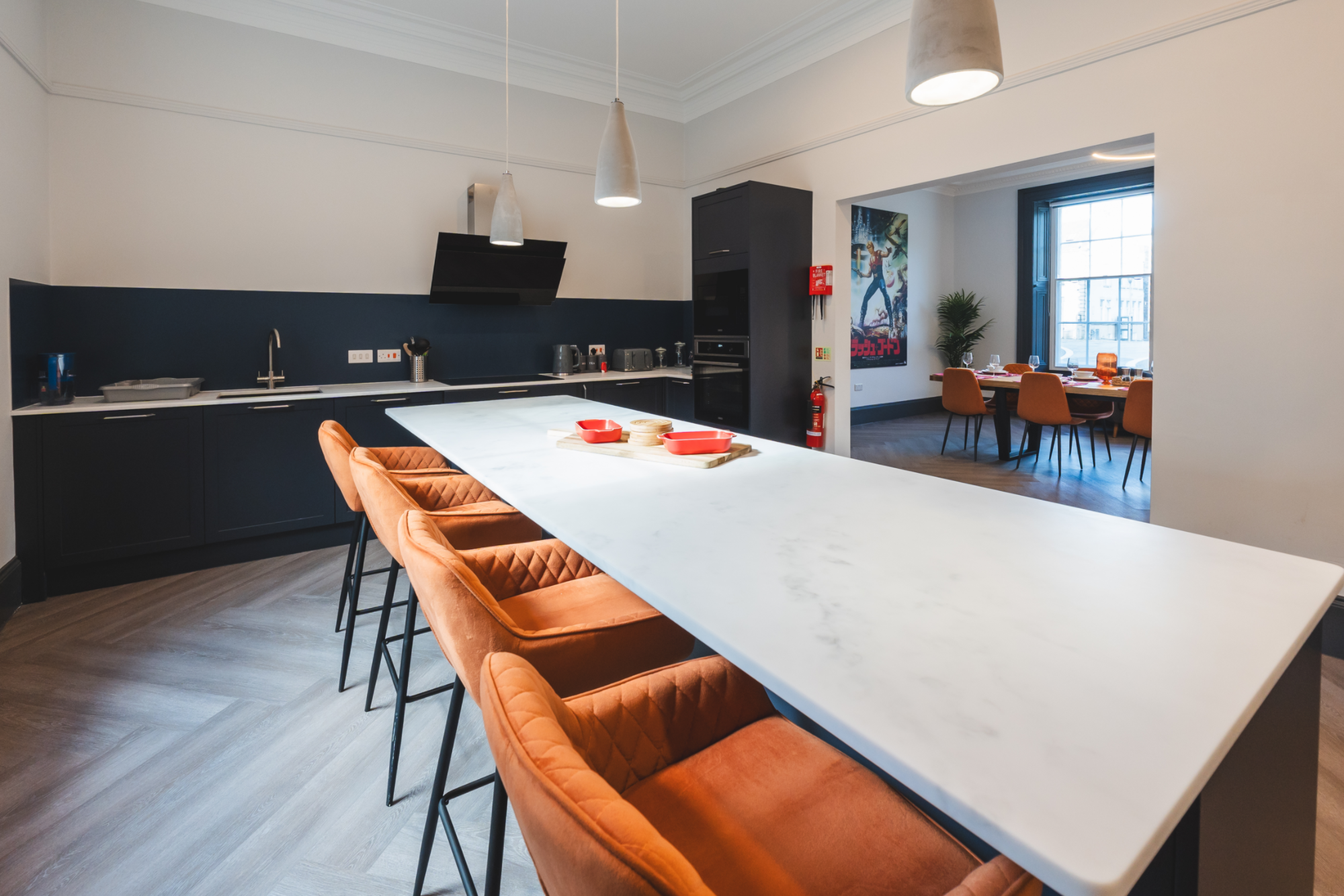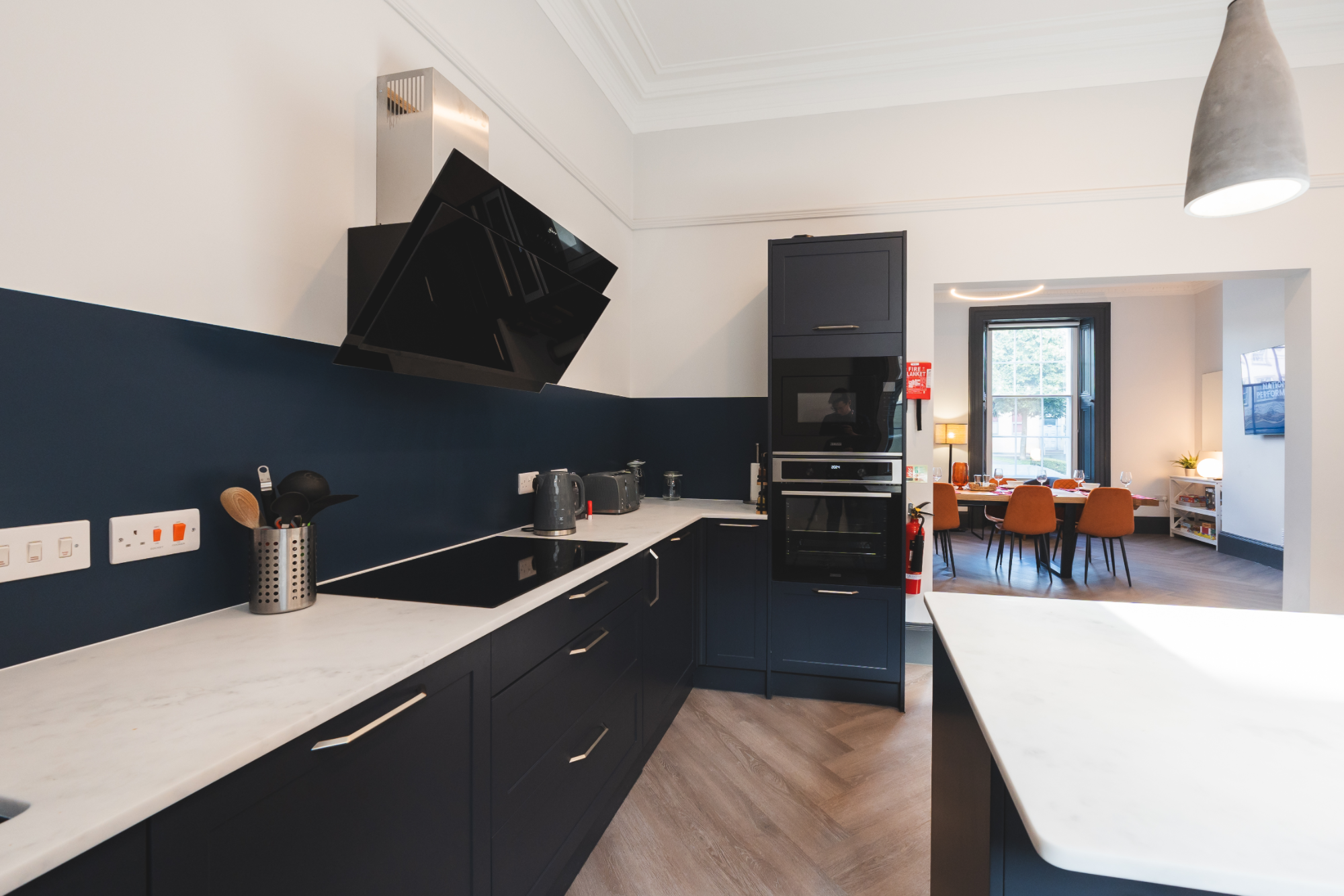 Indulge in open plan luxury living at Ruby House, where a spacious kitchen and dining area awaits. Fully equipped with all utensils and cutlery for your convenience, this inviting space is designed for both culinary creations and shared moments with friends and family.